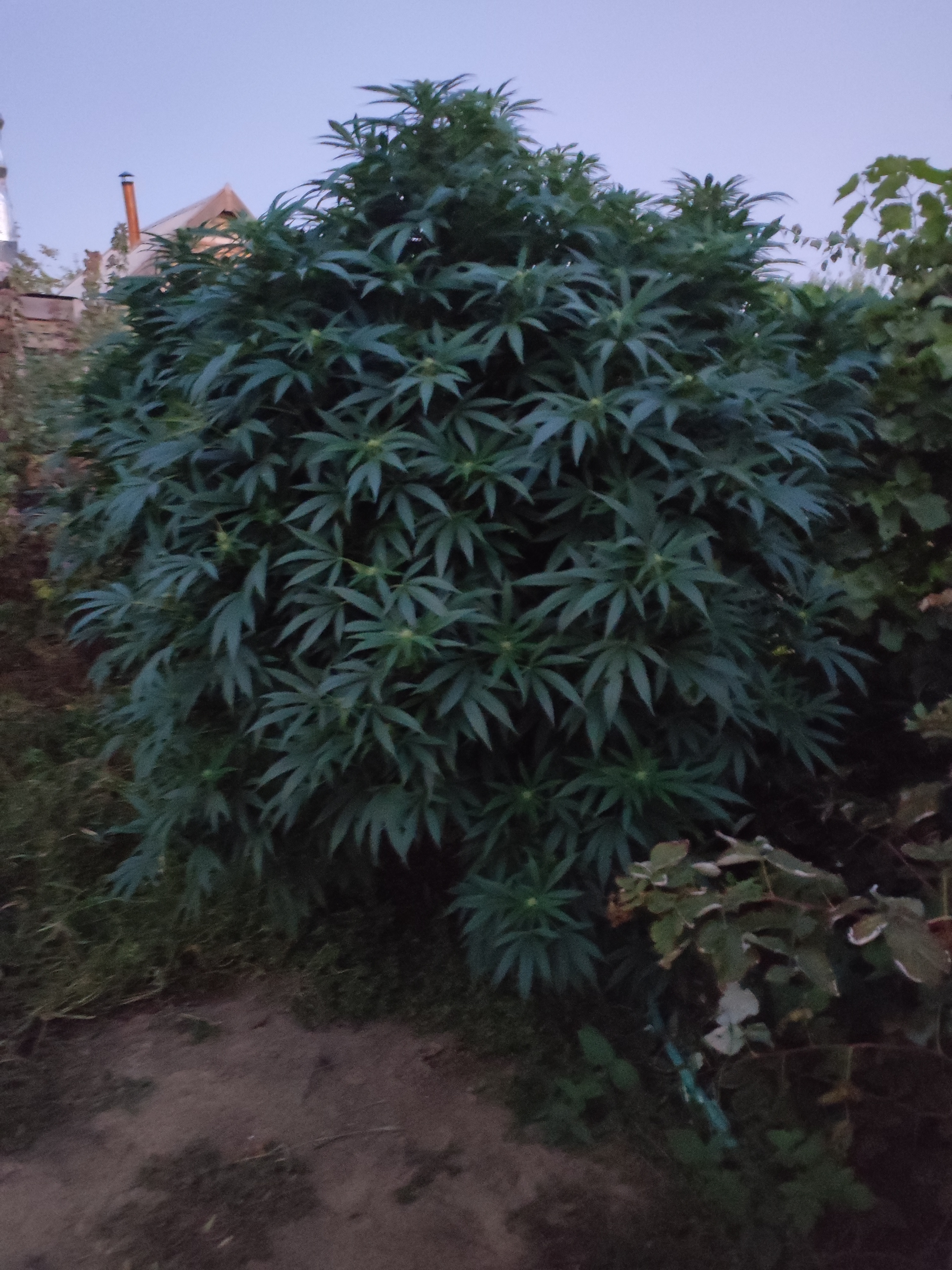 это и правда горрила вырос он более двух метров на открытом грунте обхватить в троем не получается он и правда большой а шишек столько сколько не выкурить за год и это только один куст! вставляет с одного водного!