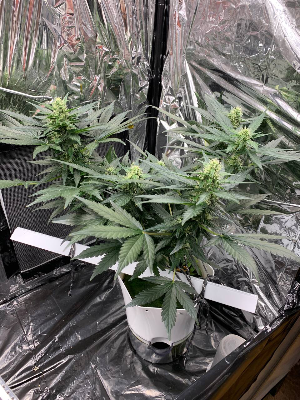 Тумба, свет120вт, горшок 10л,грунт питательный универсальный, bio-bloom когда предцвет начался. 62 день прут даже лапухи. Магазин хороший.