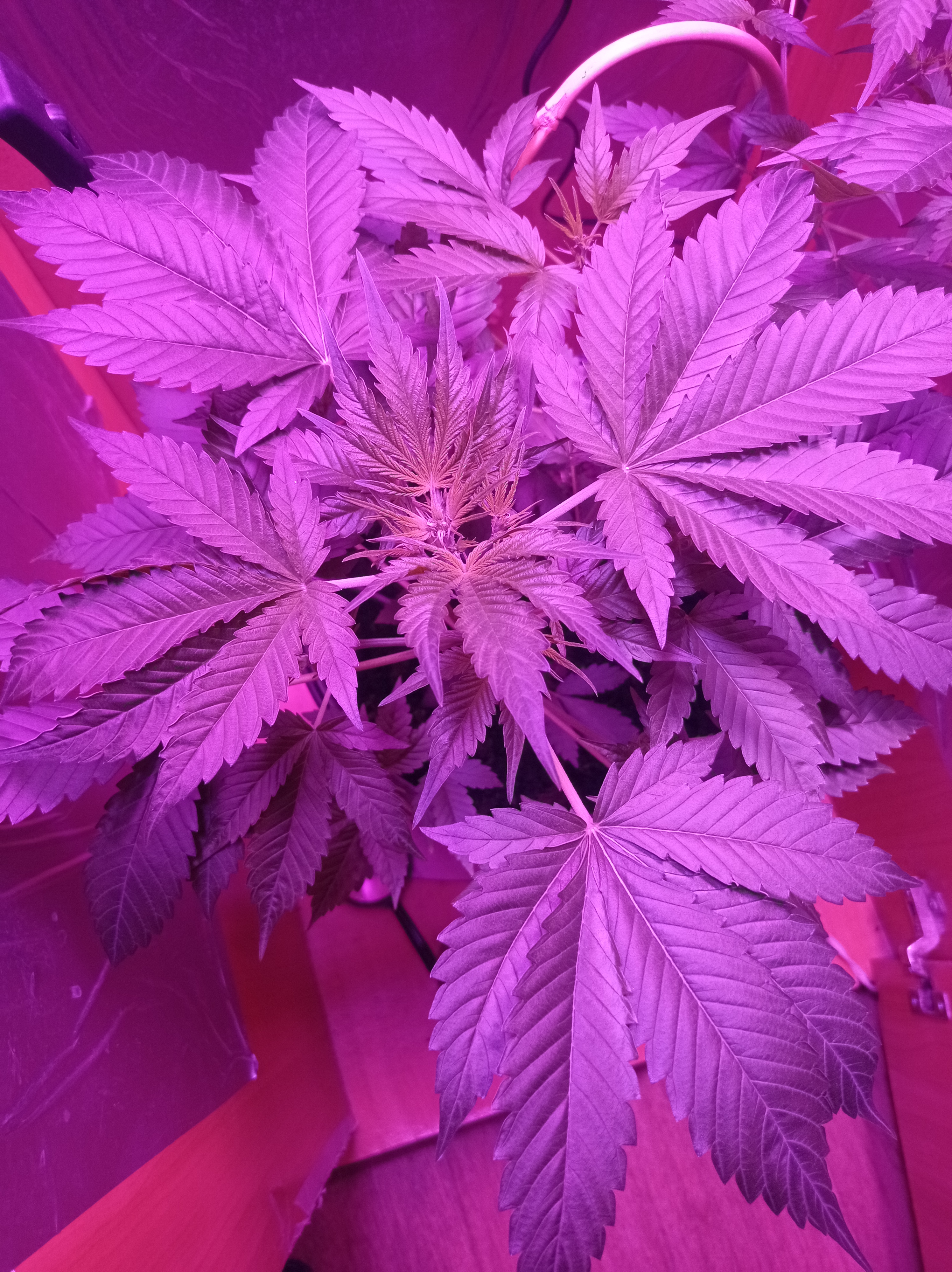 Как всегда без промахов.Идём на гидре,реверс.Этот раз на минералке от Гринов.Минифермер 400 Ватт,плюс два бустера от них же по 20 Ватт внизу на досвет. 51-й день от 🪖 каски.Полёт нормальный.Привет от Баюна😀